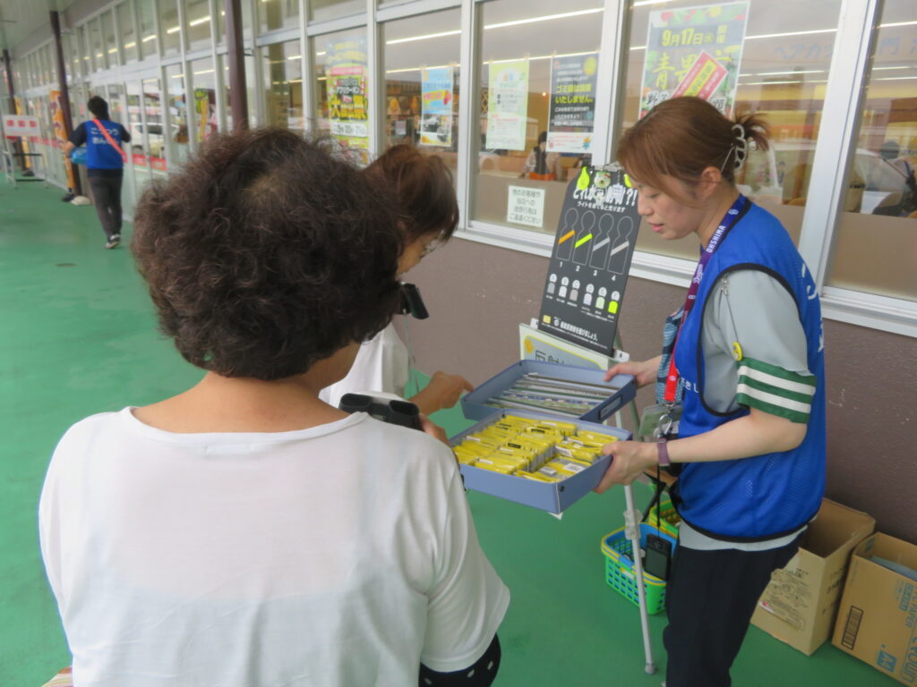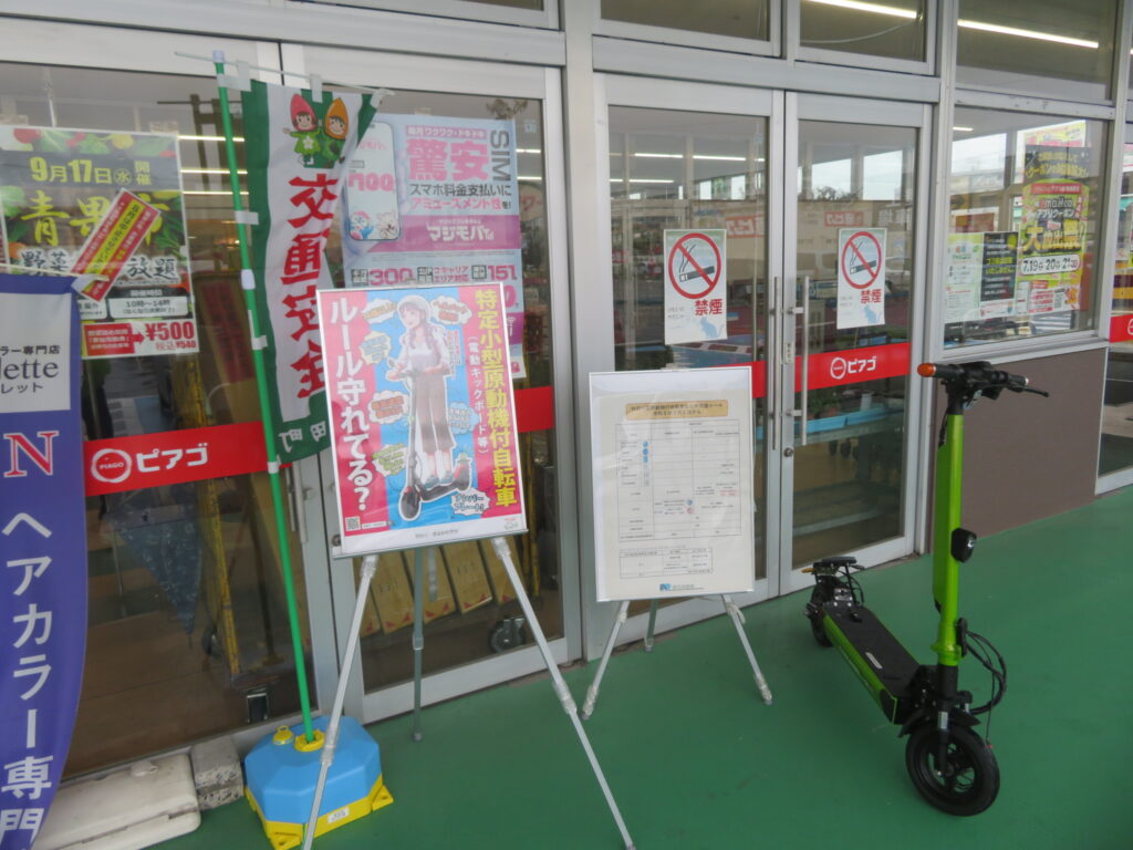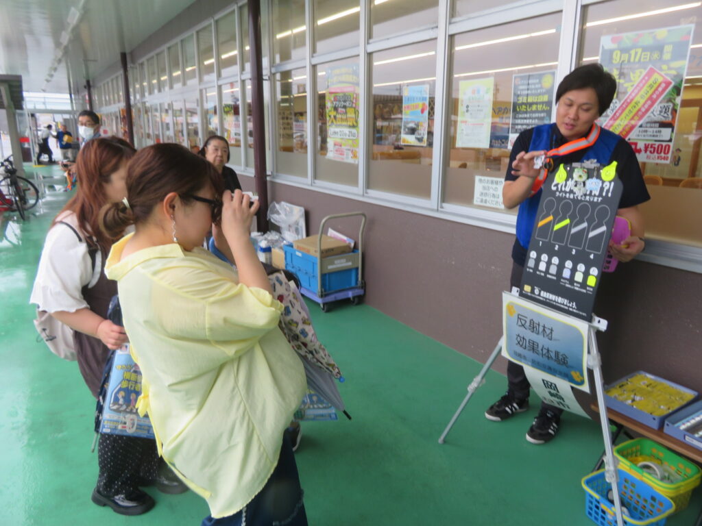 また、反射材効果の視覚体験や、電動キックボードを実際に展示して正しい乗り方の説明、交通安全啓発チラシや反射材を来店者に配布するなど、交通安全運動を高めました。