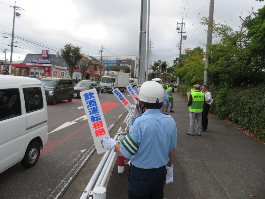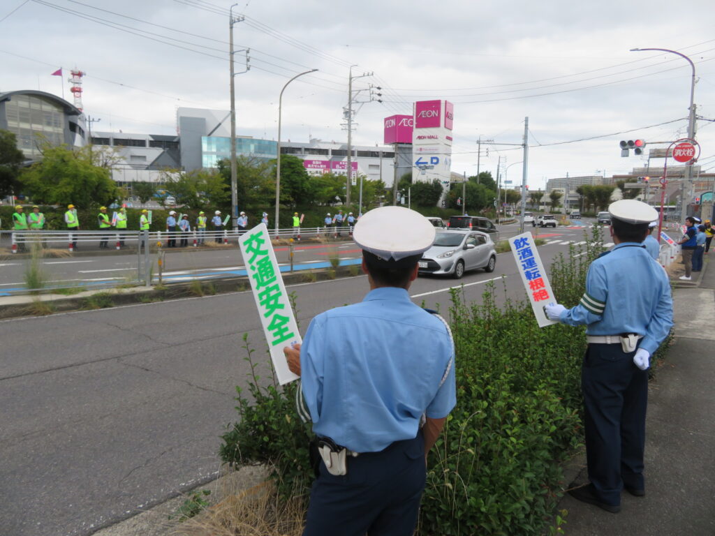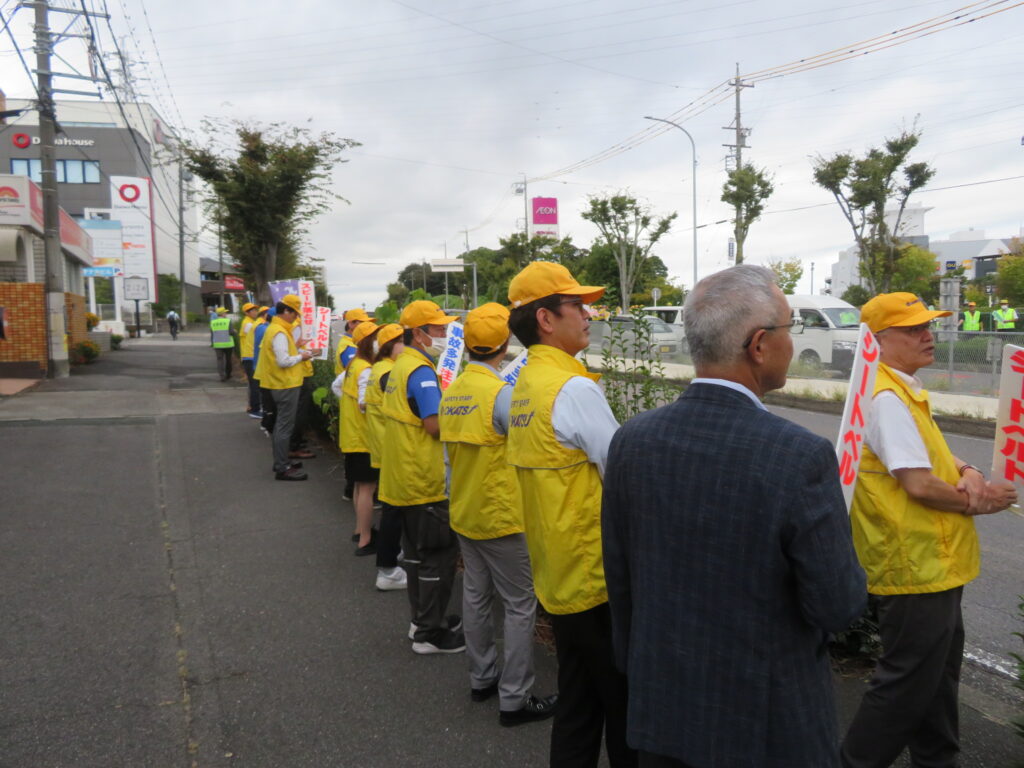 秋の全国交通安全運動を二日後に控え、岡崎市・幸田町はじめ愛知県民の交通安全意識の高揚と交通事故防止を願って、官民一体合同大立哨を開催しました。