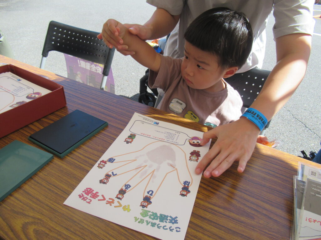 フタバ産業株式会社80周年を記念したイベントとして、また、「秋の全国交通安全運動」の一環として、同社と岡崎警察署は、白バイ・パトカーの展示や、来場者に反射材やチラシの配布(配布部数 300個)、交通安全約束手形の作成など、参加・体験型の交通安全イベントを開催しました。