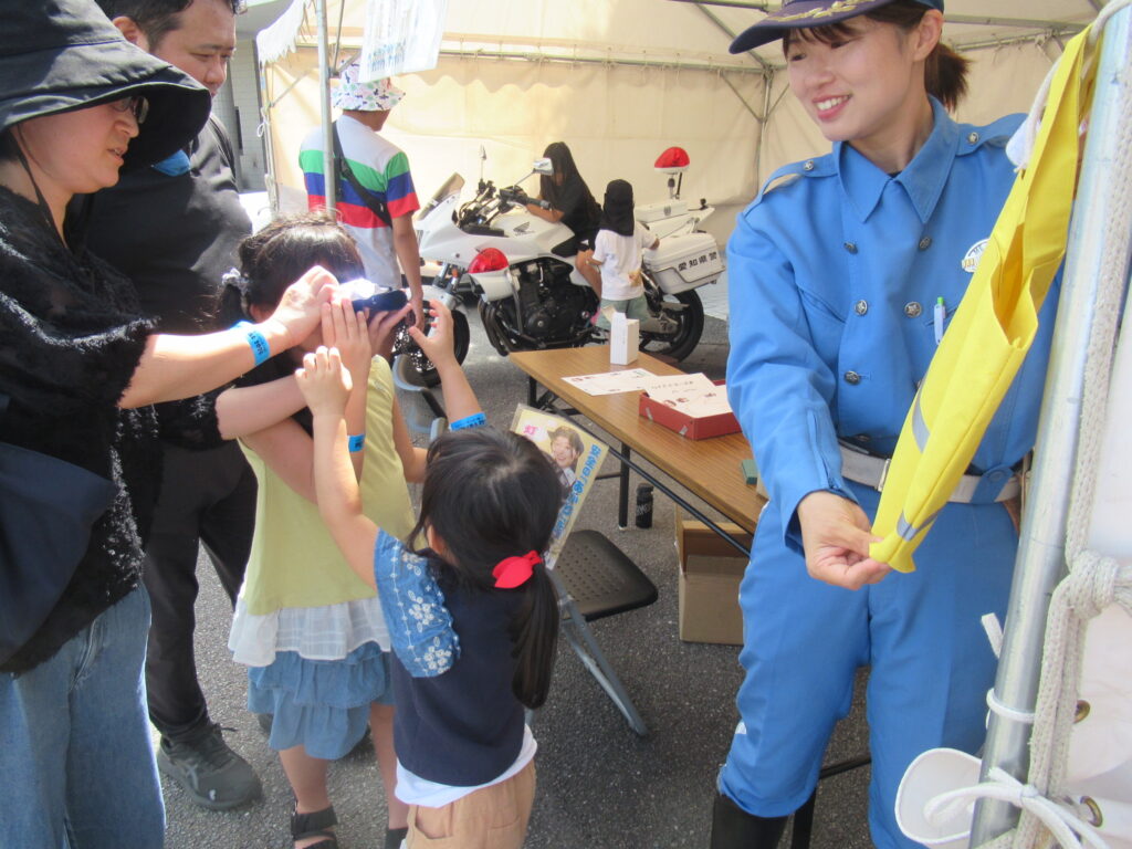 会場には、親子連れをはじめ多くの来場者が訪れ、パトカーや白バイと写真撮影や警察官から反射材の活用方法などを聞くなど、 会場は、大いに盛り上がりました。