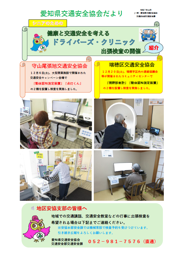 ※地域での高齢者を対象とした交通講話、交通安全教室等に出張検査は下記までご相談ください。