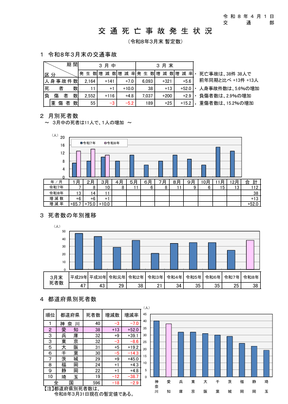 交通死亡事故発生状況(令和8年3月末暫定数)ダウンロード